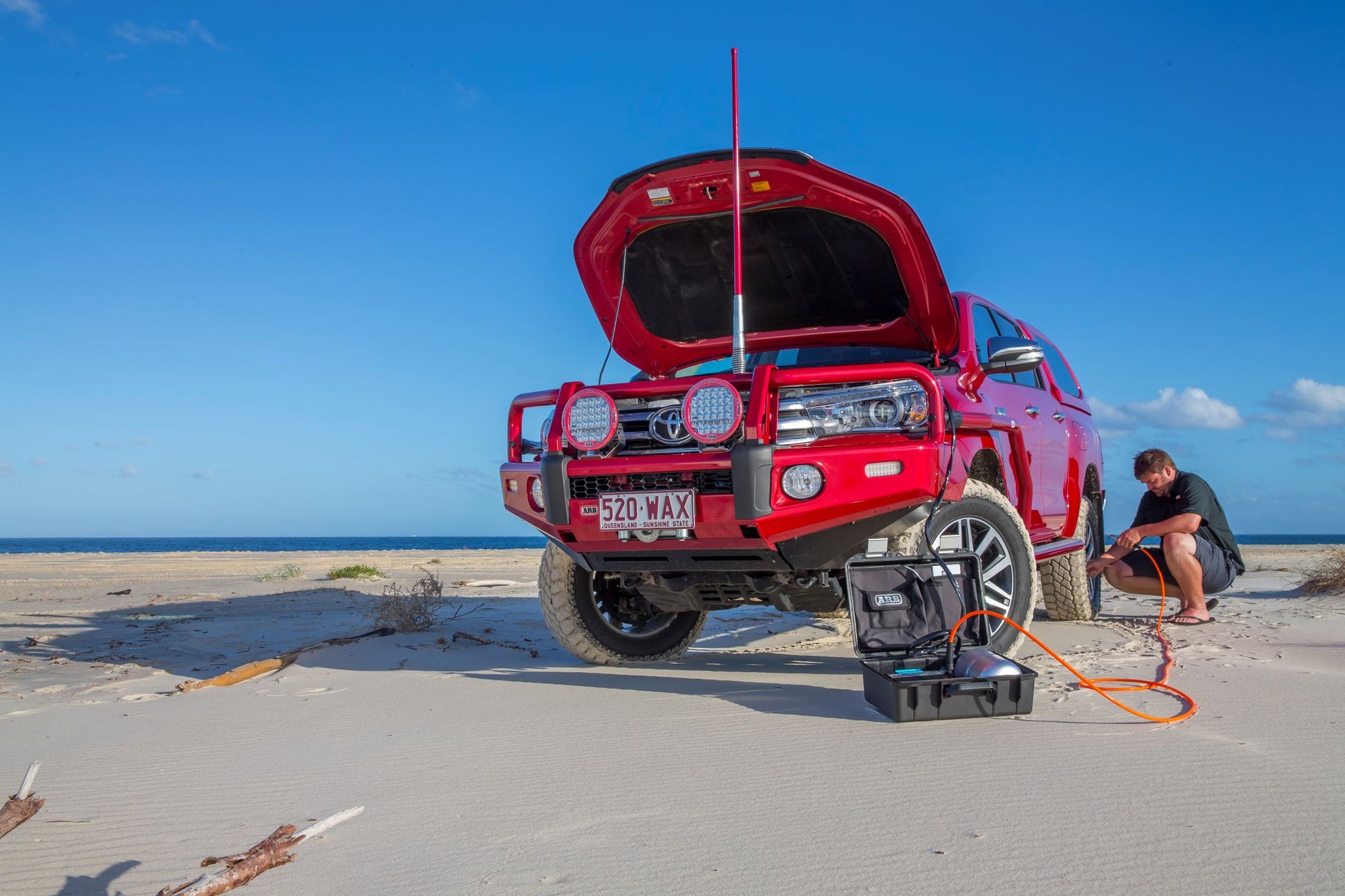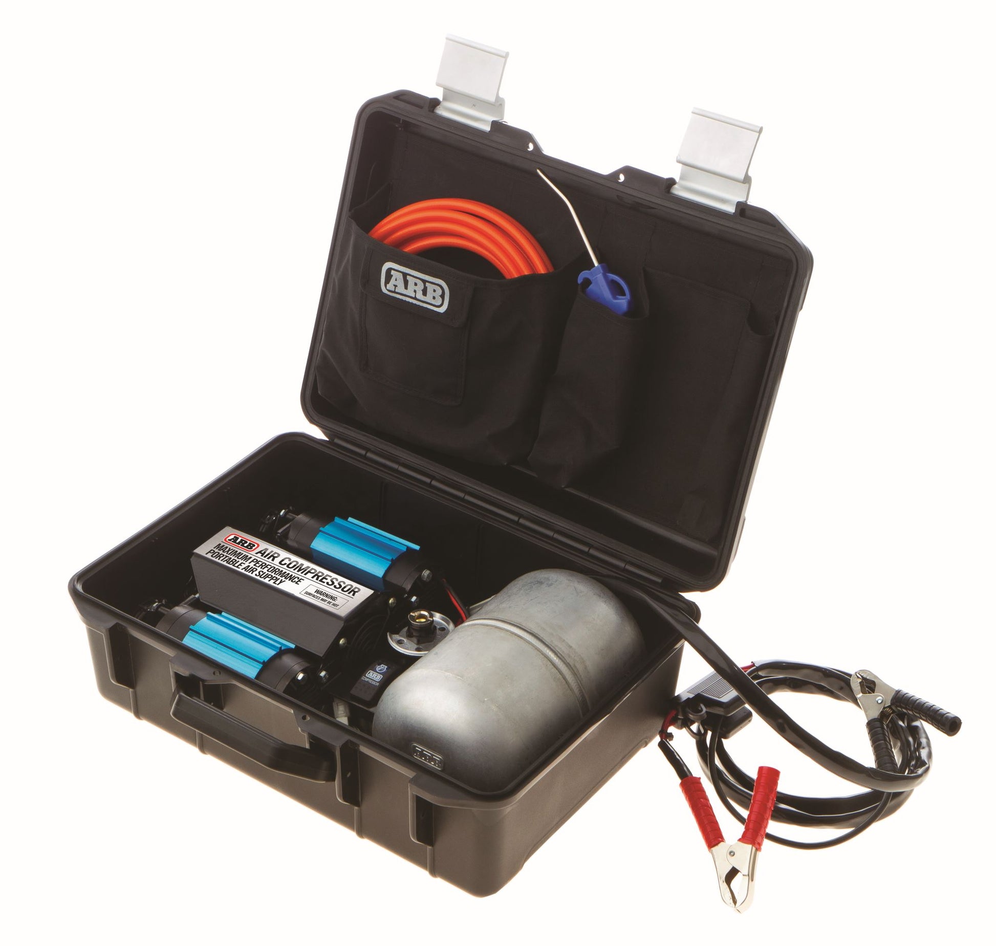 ARB's twin portable air compressor was designed to fill the market need for a compact sized yet high performance compressed air source for rapid inflation of large tyres as well as the high volume air needs of most air powered tools. The ARB CKMTP12 is a world class recreational product designed and built to commercial/industrial standards to survive harsh and demanding outback conditions