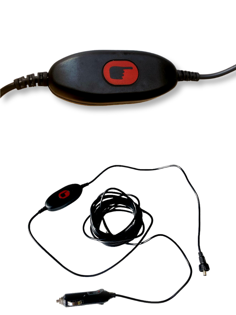 - Power via 12V socket or battery clips